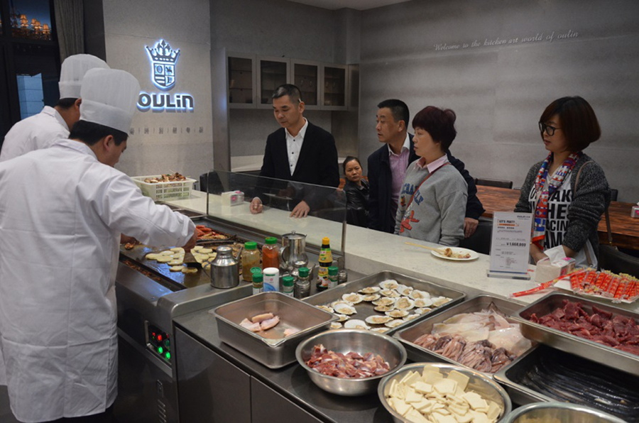 另外,在用戶們耐心選購的時候,OULIN歐琳廚房展廳中的Party廚房已經(jīng)準(zhǔn)備就緒,特邀的大廚們精心烹制著美味,等待用戶們來享用一場鐵板燒盛宴。誘人的香氣不斷從窗戶中飄出,讓人饞涎欲滴。