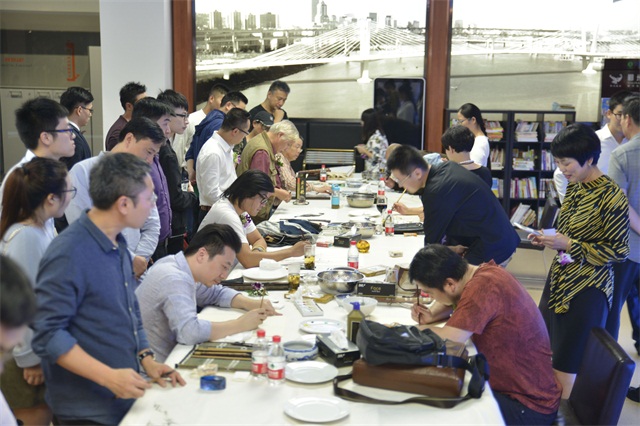 當廚房的香味邂逅書畫家們的筆墨書香,將激發怎樣的創意和靈感?10月22日下午,12名知名書畫家和近百名文人雅士們的到來,使得歐琳國際工業園處處充滿了濃郁的藝術氣息。一場以“歐琳雅集”為主題的藝術沙龍品鑒會正在有條不紊地舉行。
