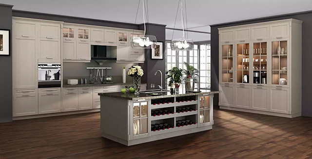 以艾米麗的名字命名這套櫥柜,整體套型柔美,弧形的線條元素設計,搭配專配的頂線以及羅馬柱,顯的輕柔靈動。