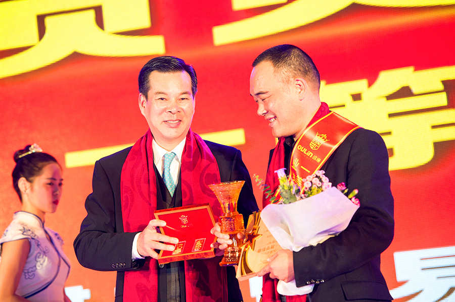 毋庸置疑,作為企業(yè)與消費者的重要連接紐帶,代理商作為企業(yè)末梢銷售環(huán)節(jié),起到塑造企業(yè)終端形象、保障現(xiàn)金流順暢、協(xié)助企業(yè)拓網(wǎng)等重要作用,OULIN歐琳也深諳此道。在會議中特別安排了頒獎環(huán)節(jié),對過去一年中有突出貢獻的代理商,頒發(fā)了包括“業(yè)績貢獻獎”、“渠道開拓獎”、“新品推廣獎”、“優(yōu)秀終端獎”等一系列獎項,并送上黃金紀念品。