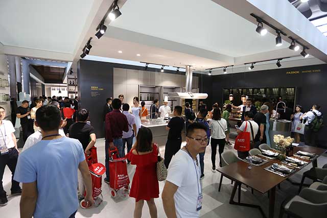 本次展會OULIN歐琳展館延續了往年德式風格,以“Party食光”主題,在此基礎上做了全新升級!新升級的Party廚房社交體驗中心,在本次展會中推出了五款新品,無論是時尚的工業風,亦或極簡風格的,還是經典實木和原鋼完美融合的社交廚房設計風格,都精彩演繹了美好快樂的社交生活。誘人的美廚美食,吸引了所有在場的觀眾們,歐琳整體廚房在本次展會中獨樹一幟,別具一格!