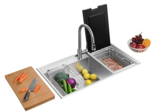 值得一提的是,此次新品配備了手機操控系統APP,用戶只要將早上買好的菜經過簡單清理后,放入水槽,設定好模式,下班時就可以提前開啟水槽清洗功能,節約了操控時間。